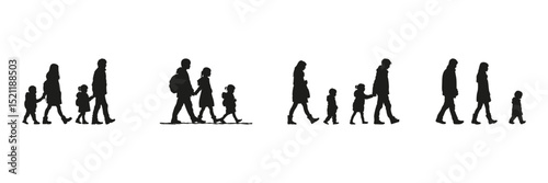People silhouette vector set with walking, standing, and everyday activity poses across age groups for lifestyle, urban, and design use