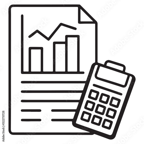 Business planning, accounting, data analysis, educational materials, financial management, layout design. Document design with lines and a calculator icon. Business planning and accounting concept