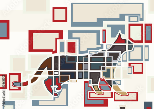 Stylized black and white cat walking forward, Elegant feline silhouette vector design