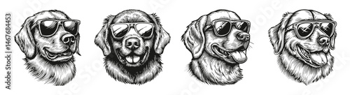 Cool dogs wearing sunglasses vector illustration of various breeds of faces