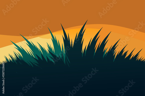 Abstract landscape illustration of desert plants at sunrise.