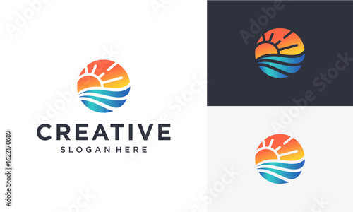 waves and sun colorful abstract logo design
