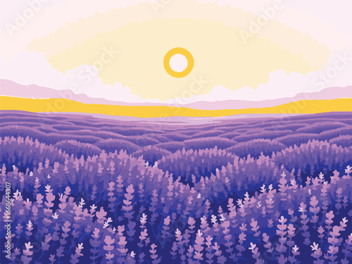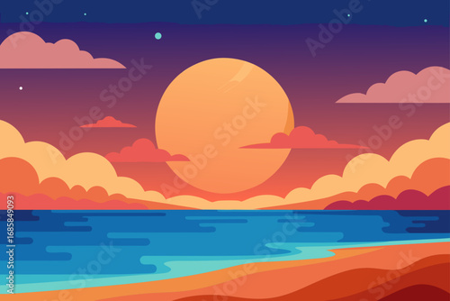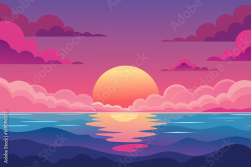 illustration showing a vibrant sunrise or sunset.