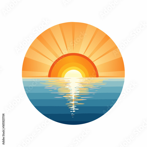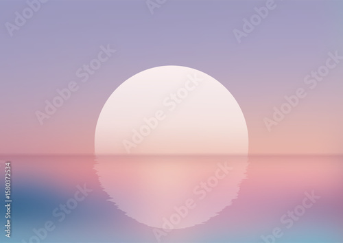 Serene Sunrise or Sunset Reflection on Calm Water in Abstract Circular Design