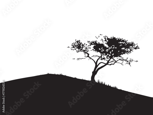 Lonely tree on hill silhouette vector illustration artwork
