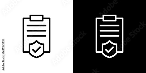 Medical insurance document icon set, with shield check mark symbol, simple healthcare protection outline vector illustration for hospital, clinic, health policy, Vector illustration, eps10.