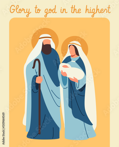 Stunning Nativity Scene in Vibrant Stained Glass Style for Christmas Projects and Religious Designs, Depicting Mary, Joseph, and Baby Jesus