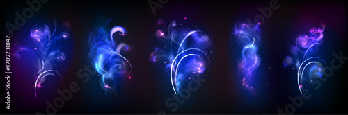 A bright flowing line glides across a clear space, casting soft png sparkles. Its motion feels smooth and continuous. The whole scene creates a calm futuristic atmosphere. Vector illustartion.