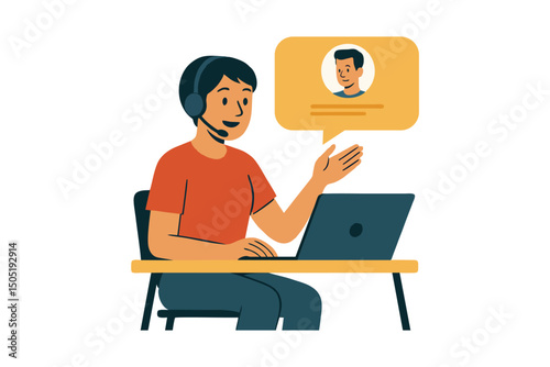 A Man having a conference call with his business team online, telecommuting, remote work and business communications concept. vector, illustration