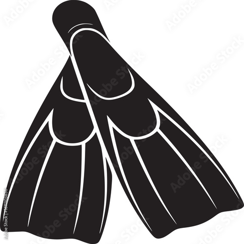 A pair of black and white swim fins or flippers overlapping on a white background in simple style