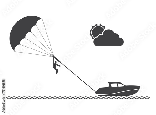 Black Silhouettes Hang Glider or Parachute skydiving. Army parachute, airborne soldiers, military parachuting, descending rapidly, veterans, and civilians jump. Para gliding parachute man illustration