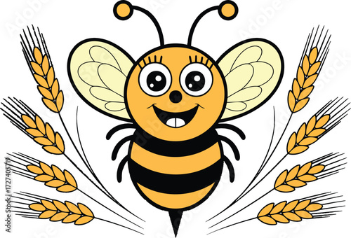 A cartoon illustration of happy bee, Honey Bee Cartoon Illustration, Hand drawn honey bee cartoon illustration, Bumble Bee Cartoon.