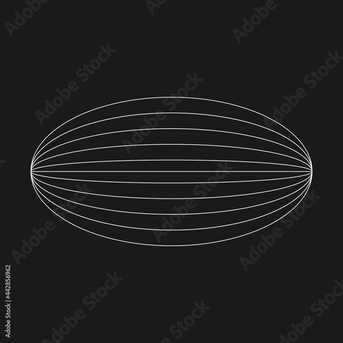 A glitchy halftone dotted donut with criss-crossed radials, flattened to the right. Space for copying text. For logos, trademarks, emblems. Vector.