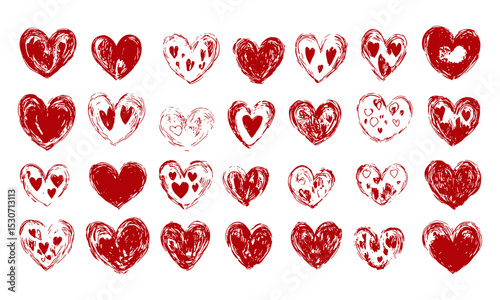 Hand-Drawn Scribble Heart Set, Abstract Love Doodle Collection