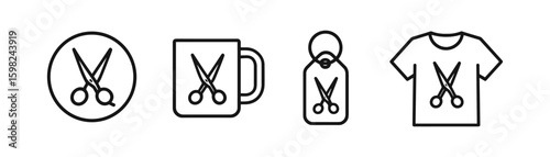 Barber line outline icon set
