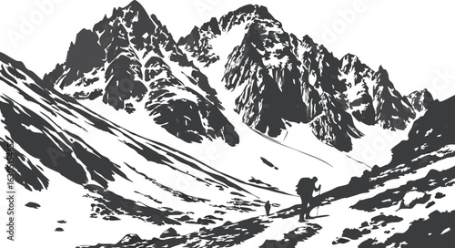 Mountain climbing outline. Persistence and discipline in simple lines.
