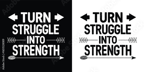 Turn struggle into strength motivational quote with bold typography and arrows, inspiring resilience and personal growth for a positive mindset