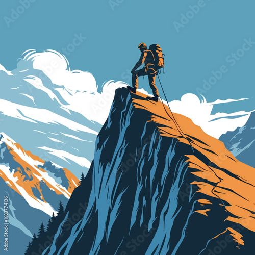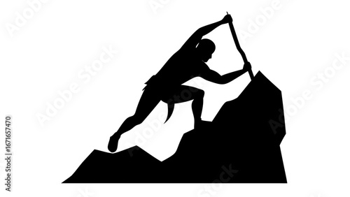 Climbing to the Top: A determined silhouette ascends a rocky peak, embodying the spirit of ambition and resilience, symbolizing the journey to conquer goals and overcome obstacles.