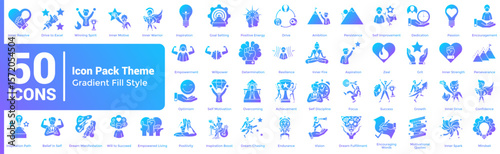 Motivation Line Icon Set – Personal Growth, Goal Setting, Achievement, Rocket, Teamwork, Passion Vector Illustration