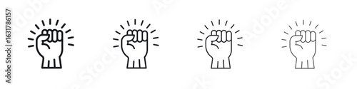 Clenched fist outline. Minimalist vector symbol of willpower strength and resilience.