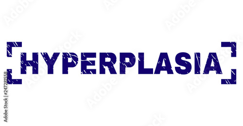 Grunge ENDOMETRIAL HYPERPLASIA rectangle stamp seals isolated on a white background. Rectangular seals with grunge texture in red, blue, black and grey colors.