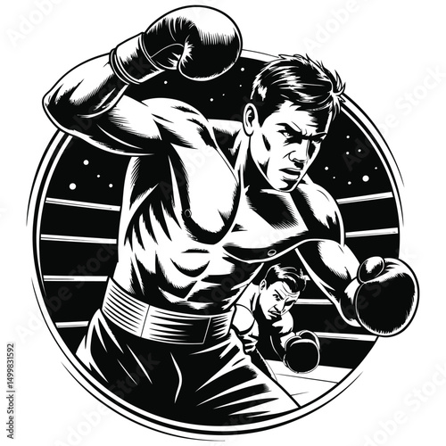 Black Beauty Boxing Man Logo Mastery Exquisite Sporty Art Boxing Man in Black Vector