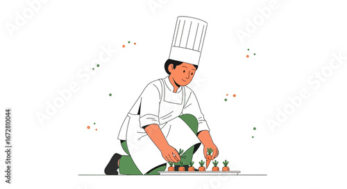 Elegant Chef Arranging Miniature Carrots Culinary Precision Food Presentation