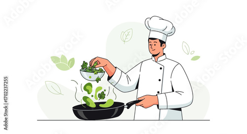 Professional Chef Plating Gourmet Food - Line Art Illustration