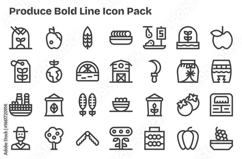 Extra Bold Line Icons - Produce Set with 28 Vectors