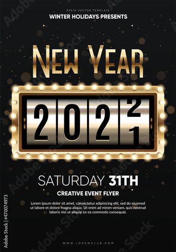 Xmas and New 2022 Year party club flyer. Eps10 vector template.