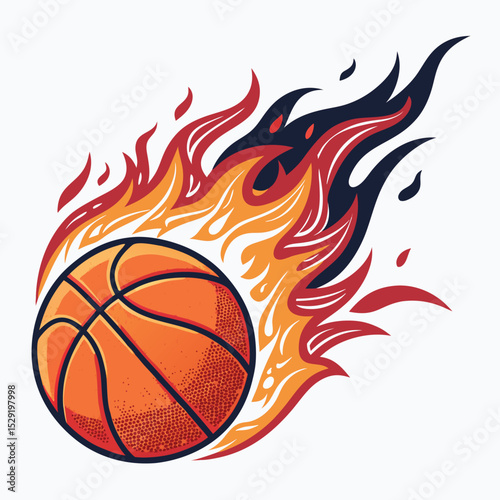 Dynamic Basketball Graphic Set Flaming Exploding and Speed Ball with Court Elements