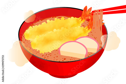 Japanese tempura udon noodle soup recipe illustration vector.