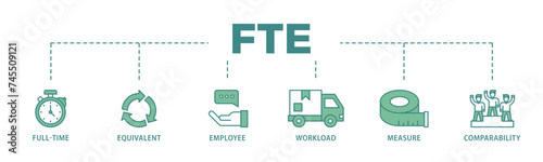 FTE - fulltime equivalent employee banner web illustration with icon of full-time, equivalent, employee, workload, measure and comparability