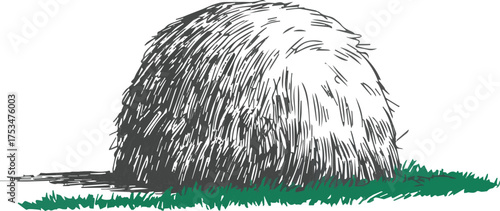 Hay bale farm drawing sketch. Hand drawn haystack. Isolated vector illustration.