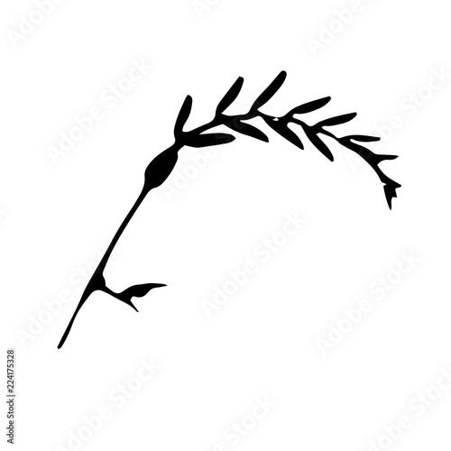 Black silhouette with leaf of tree. Single isolated clipart. Prints of leaves on branch. Flora and nature theme for paper cutting scrapbook design