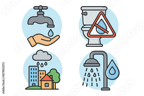 Isolated Vector Elements With Energetic Kids Characters Happily Sip Water, Emphasizing The Importance Of Hydration