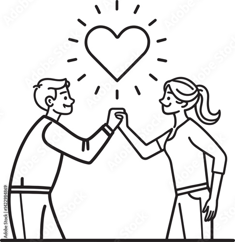 Joyful Family Unwrapping Christmas Gifts Under Decorated Tree, Celebrating Holiday Season with Happiness and Togetherness, Simple Line Art Illustra...