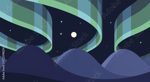 Vibrant Aurora Borealis dancing over a serene mountain landscape at night.