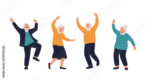 Joyful elderly couple dancing together embracing happiness and good health in their golden years celebration