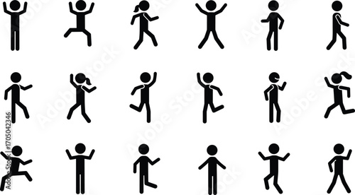 Human pose silhouettes vector illustration, dynamic standing and gesture icon set, expressive body language design, dance and movement graphic clipart