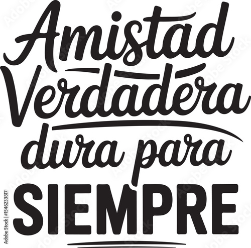 Friendship Day Spanish Quote Typography Silhouette Vector, Amistad Verdadera Dura para Siempre typography
