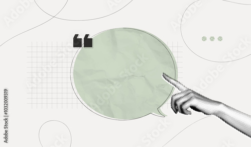 Trendy Halftone Collage Woman Hand holds Light bulb. Study and education concept. New ideas and solutions in business. Creative mind or brainstorm. Contemporary vector illustration art