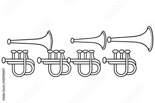 Trombone musical instrument line art and colored illustration on white background brass instrument wind instrument