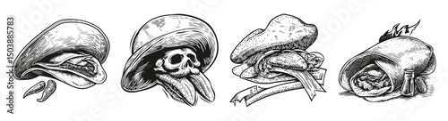A Collection of Vector Icons Featuring a Variety of Delicious Sandwiches and Flavorful Wraps Ideal for Menus and Food-Related Graphics
