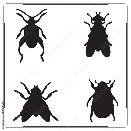 Insect vector black silhouettes set, collection of beetle, spider, moth, longhorn, and cricket species, detailed anatomy, entomology, nature, and educational graphic elements.