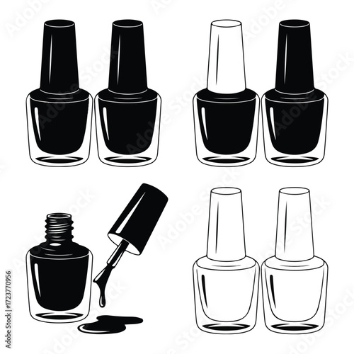 Elegant nail polish bottle silhouette vector illustrations for beauty and manicure concepts