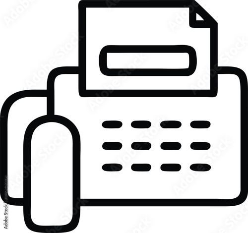 Fax machine icon set in diverse styles, featuring detailed outline and solid fill designs for communication, office, and business technology. Vector