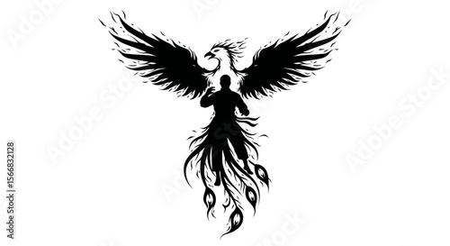 Enchanting Phoenix silhouette crafted for mythological artwork - Phoenix illustration - Phoenix vector - mythical creature silhouette