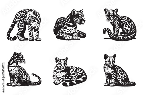 Set of Elephant Silhouettes Vector Illustration Black Outline Isolated on White Background African Safari Wildlife Animals Big Five Nature Digital Graphics Collection