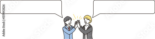 吹き出しと笑顔で喜んでいる女子高校生と先生がハイタッチしているシンプルな上半身のイラスト素材
